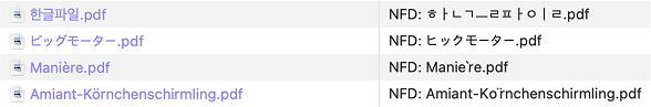 • Convert Unicode filenames in NFD to NFC