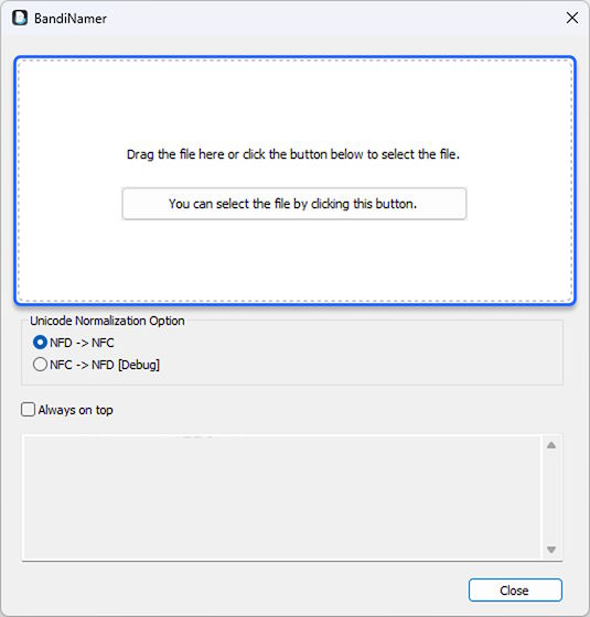 And NFC filenames may be automatically converted to NFD while the files are transferred from macOS to Windows. BandiNamer for Windows can fix this problem; just transfer the files to Windows and use the program to correct the filenames.