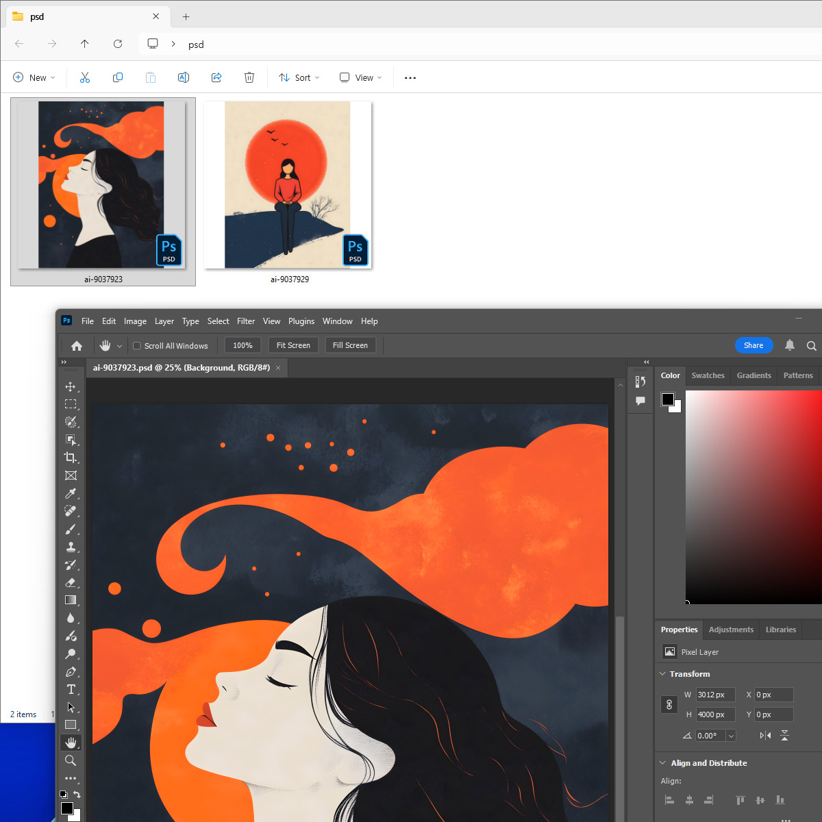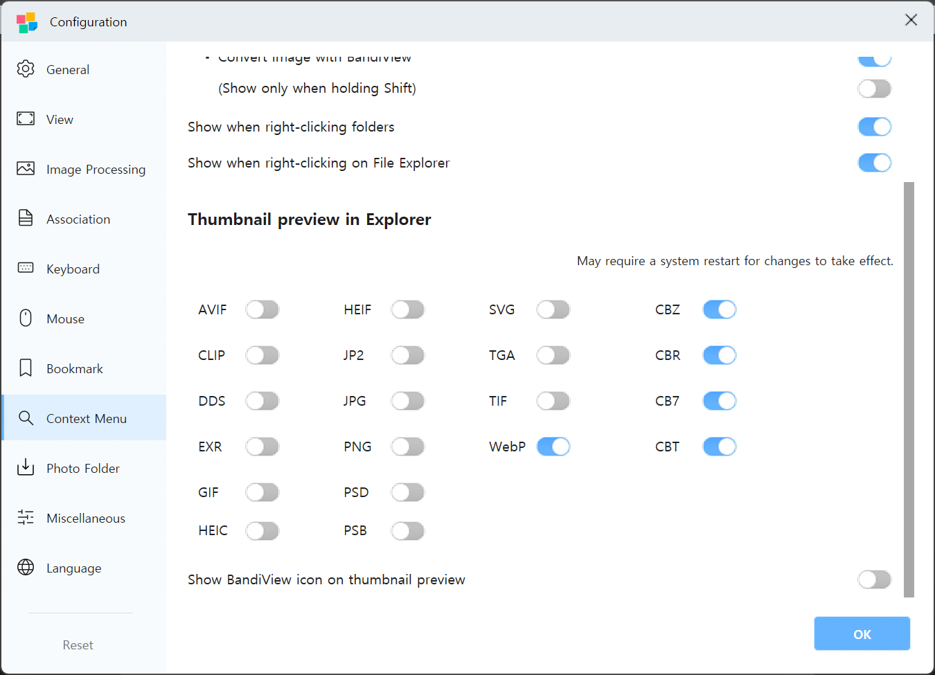 BandiView enables thumbnail previews in File Explorer for the following image formats which are not natively supported by Windows: PSD, PSB, CLIP, EXR, SVG