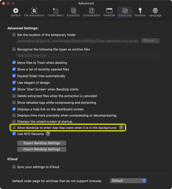 How to enable App Nap for Bandizip