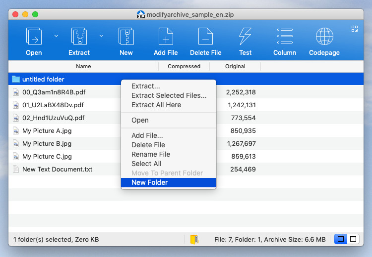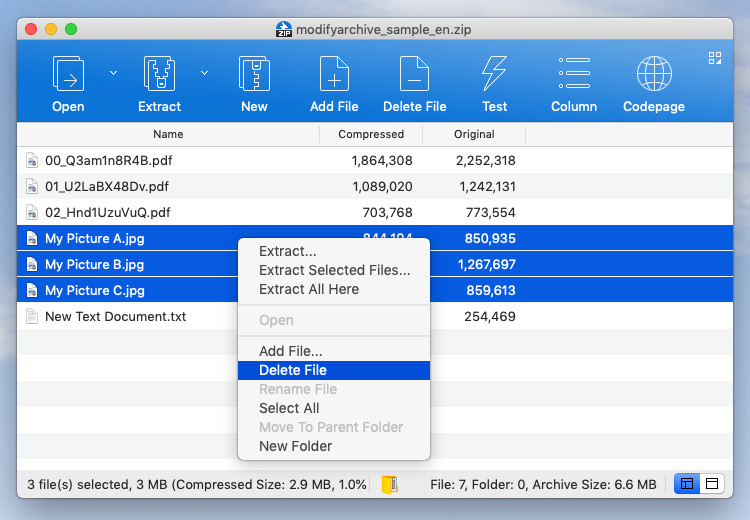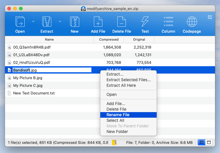Bandizip allows you to modify your archive without its decompression; you can add other files to the existing archive, delete or rename the files already compressed in the archive.