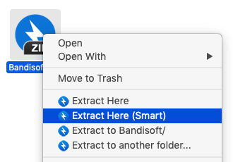 How to use Multi-core Compression How to use the Finder’s right-click menu for Bandizip How to set Bandizip as the default app to open archives How to open RAR files on Mac How to open ALZ and EGG files on Mac How to use Extract Here (Smart) How to split a large file into smaller files with Bandizip How to view a list of files in an archive How to modify an archive without decompression How to set a password for an archive How to encrypt filenames in archives How to preview image, document, and music files in an archive How to use Bandizip's built-in image viewer How to move files to Recycle Bin (Trash) when deleting How to delete an archive after extraction How to use presets when compressing files How to use Parallel Extraction Command Line Parameters How to use the Password Manager How to use the Auto Password How to use Repair Archive How to use the Password Recovery