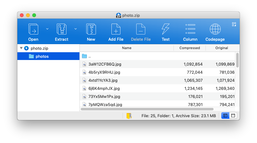 2. When all files in the archive are bundled in a single folder, they are extracted to the current location. In a case like the example below, “photos” folder is created in the current location, and all the files are extracted to the folder.