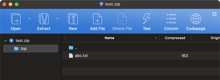 Bandizip c -root:top ~/Documents/test.zip ~/Documents/abc.txt