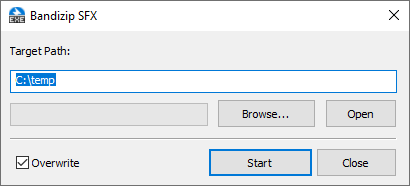 Most archiving software including Bandizip provides a feature of creating an archive file in EXE format. Since the EXE file created by this feature can be extracted without the aid of other third-party archivers, it is also called a Self-extracting archive (SFX) file. The “bdzsfx.x86.sfx” is used by Bandizip to create the SFX file.