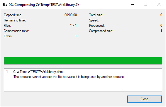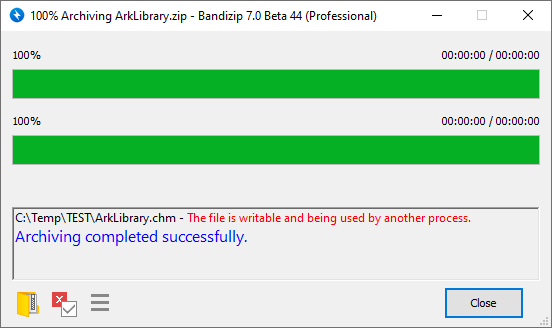 Along with displaying the warning message as below, Bandizip provides a feature of compressing a file being used by another process if the file cannot be written but can be read.