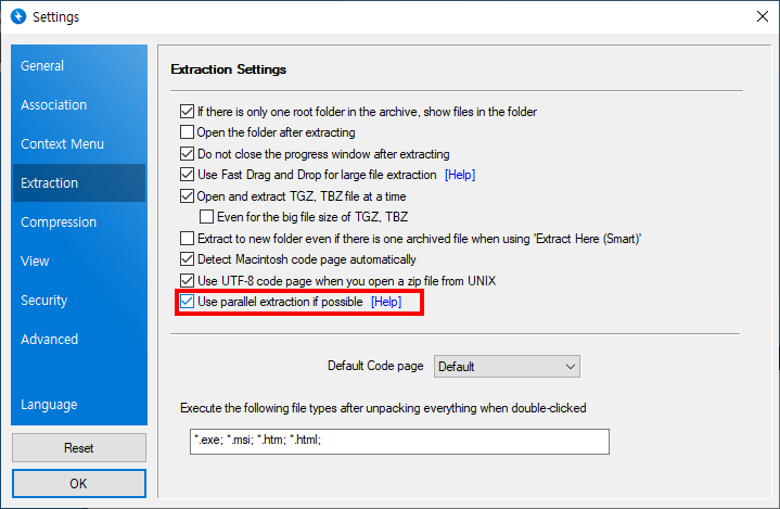 The feature "parallel extraction" of Bandizip, however, allows the program to make full use of a multi-core CPU and extract several files simultaneously; the processing speed of the parallel extraction is 2 to 6 times faster than that of usual extraction.