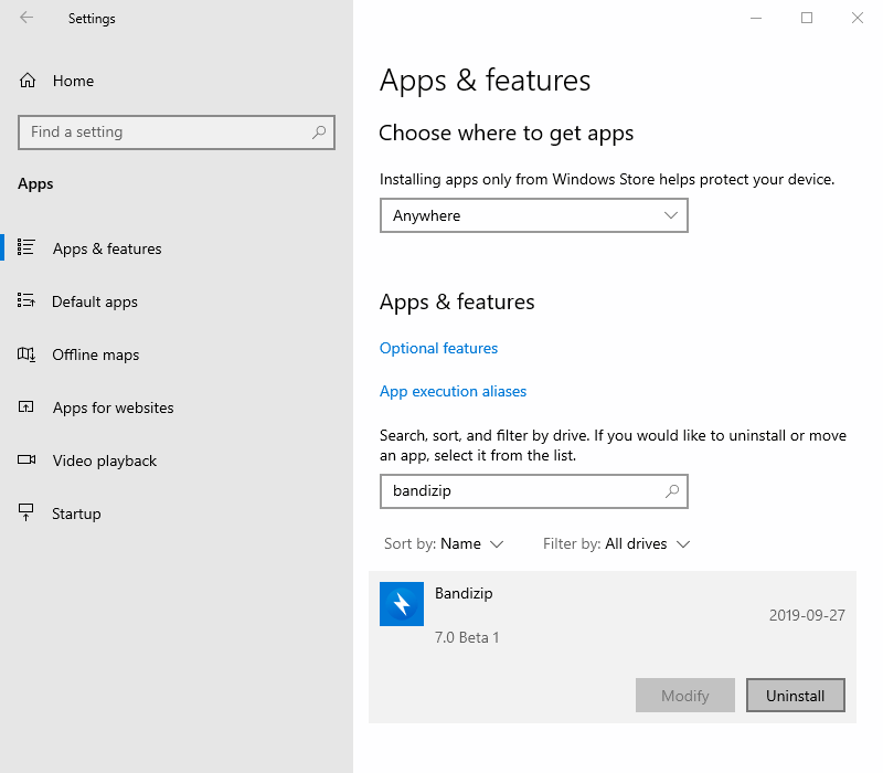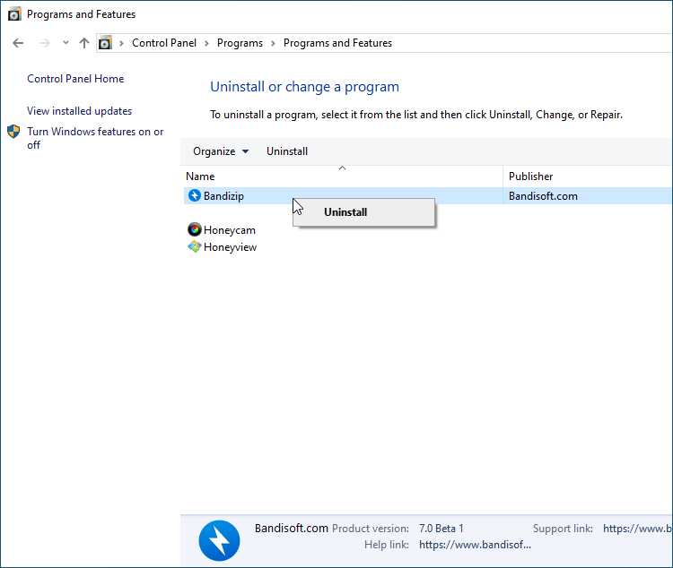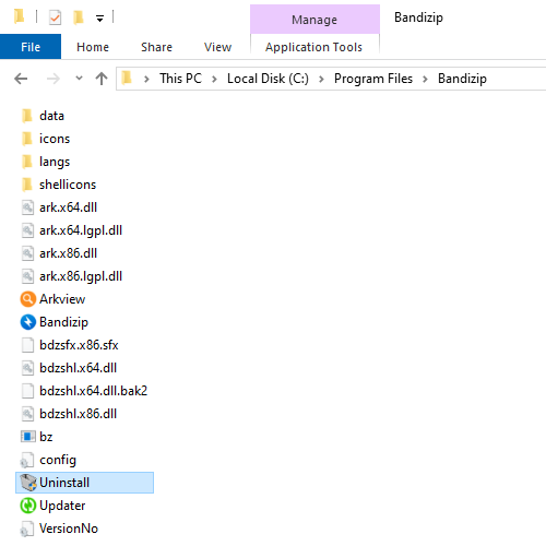 From the File Explorer, open “C:\Program Files\Bandizip” and run Uninstall.exe.