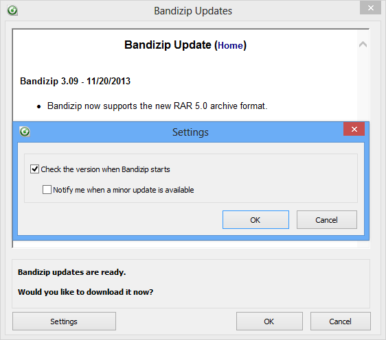 Bandizip offers two types of updates: Major updates and minor updates.