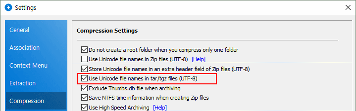 NOTE: Some applications for Windows may fail to recognize UTF-8 code page of TAR/TGZ formats properly.