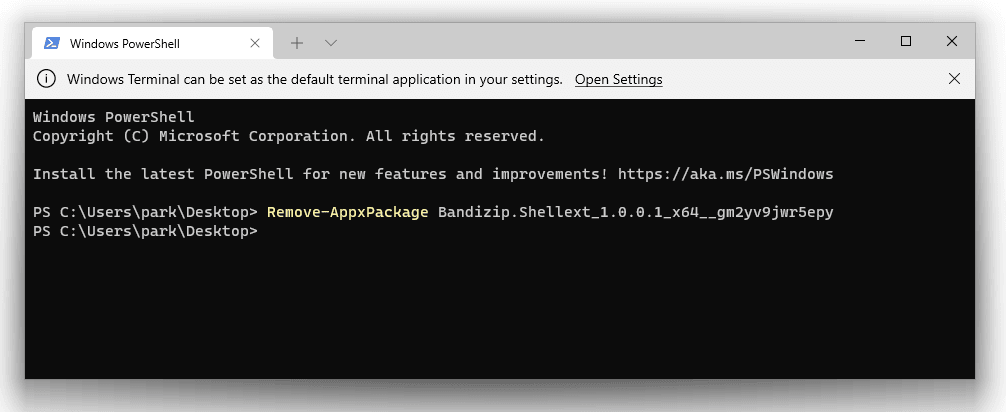 get-appxpackage BandizipShellext* | Remove-AppxPackage