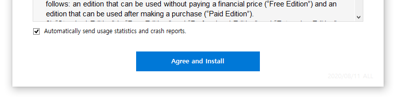 When you install Bandizip for the first time, the checkbox is selected by default as shown below and Bandizip will automatically send usage statistics and crash reports.