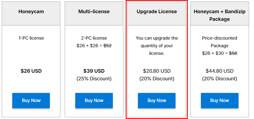 You can proceed with the payment by selecting "Upgrade License" on the Honeycam purchase page.