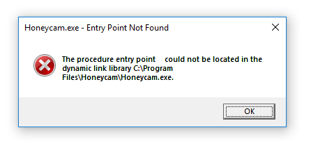 Features of Honeycam include security to prevent any possible attack, but the feature may conflict with other antivirus software. An error “Entry Point Not Found” may occur as below if F-Secure SAFE is already active on your system.