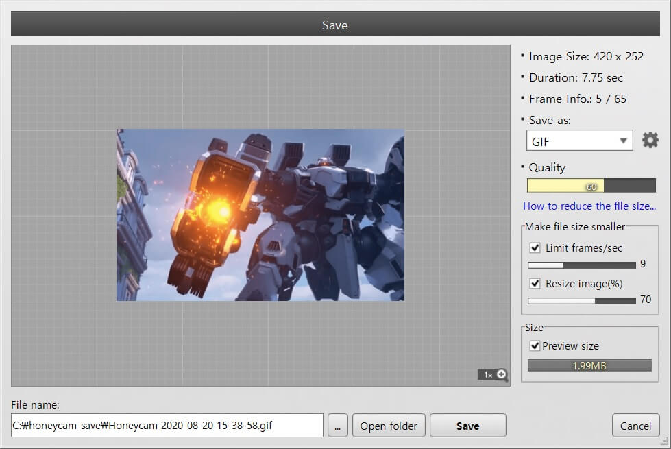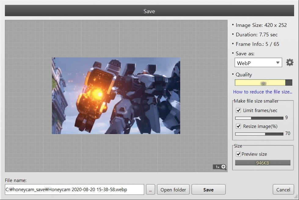 You can make GIF/WebP file size smaller so easily using Honeycam.