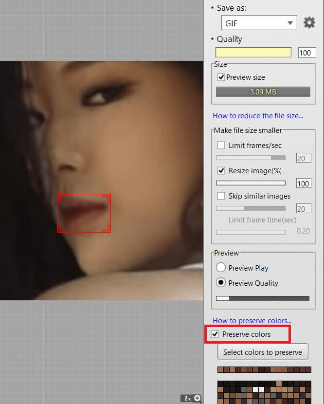 How to prevent color loss when saving as GIF