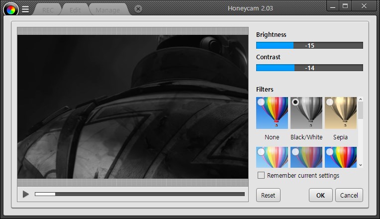 Honeycam offers various editing tools and effects.