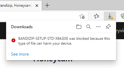 Sometimes when you try to download the installation file from Bandisoft, you may find that Microsoft Edge displays the error message as shown below and it fails to download the file.