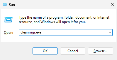 - Press Windows + R to open the Run dialog box, then enter cleanmgr.exe.